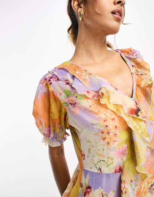River Island floral frill mesh midi dress in purple Very well made.