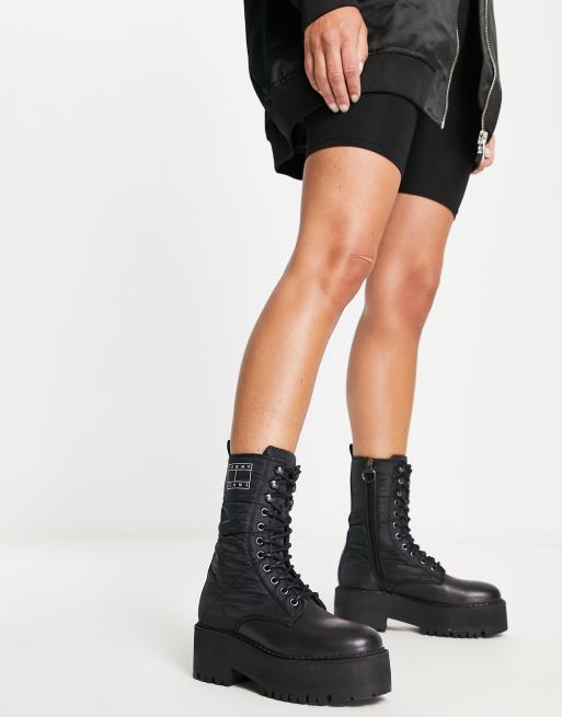 Tommy Jeans leather flatform padded boots in black Very well made.